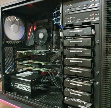 Current setup Gaming Desktops (2x): Custom-built or pre-built systems with Ryzen 7, 32GB RAM, RTX 4070 GPUs, and 2TB NVMe SSDs for high performance. These machines will handle gaming, virtualization, or other demanding tasks.