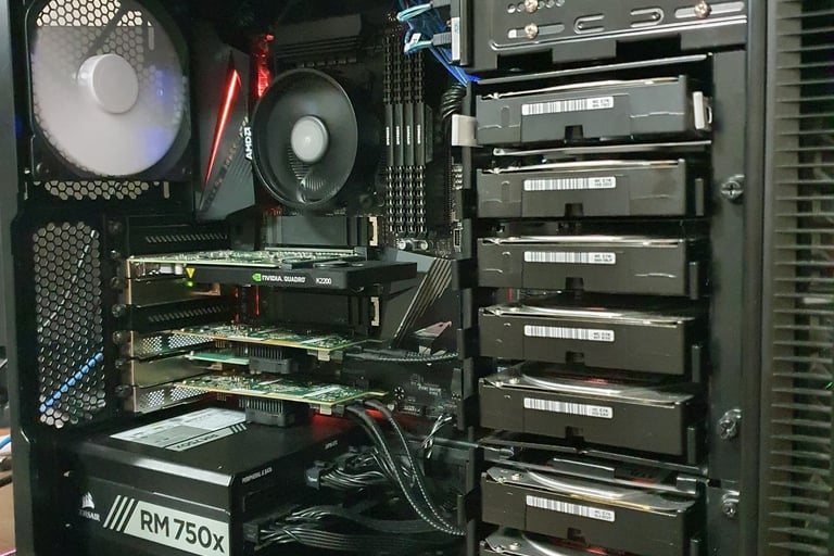Server: A dedicated DIY Ryzen 9/build with 64GB RAM and multiple SSD/HDD storage options. It can run Proxmox, VMware, or Ubuntu Server for hosting game servers, VMs, or shared resources.