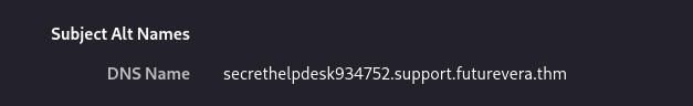 Next we want to add the support.futurevera.thm to the host file this is where we can view the site certification and get a little more information.