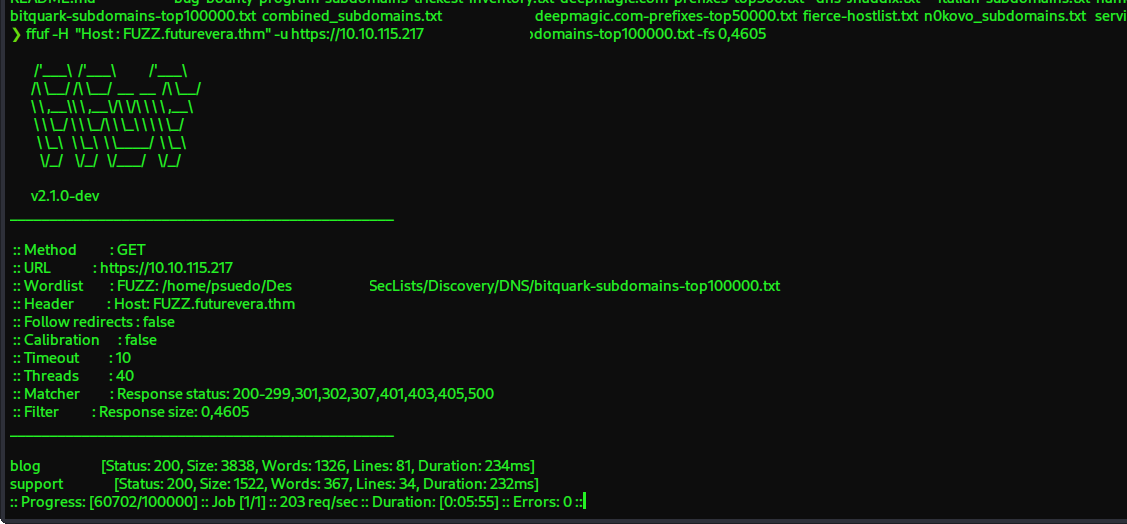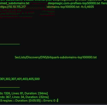 We will want to use ffuf we get two subdomains and add them to our /etc/host file so we can visit the subdomains and do some more investigation.