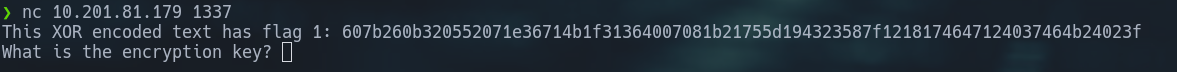 send_message(server, "This XOR encoded text has flag 1: " + hex_encoded + "\n")